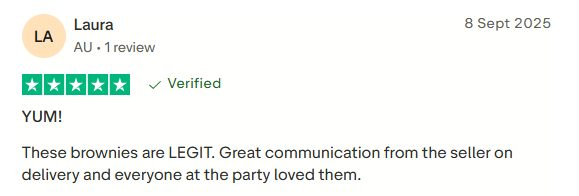We express dispatch Australia-wide deliveries every Monday, Tuesday & Wednesday. Deliveries typically arrive within 1-2 days; however, remote area deliveries can take up to 4 days. We track every order and will keep you updated throughout the delivery process so you know when to expect your brownies. Sorry, we are unable to deliver to post boxes. Unfortunately, we cannot accommodate requests to deliver at a particular time of the day, as we don’t personally deliver your orders, so we cannot control the time they arrive.