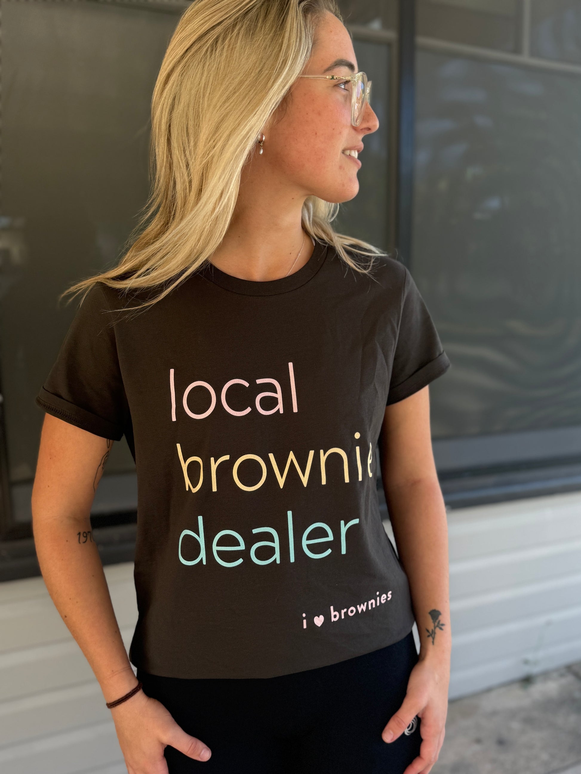 Say hello to our Local Brownie Dealer tee — the comfiest way to show your sweet allegiance and let everyone know where the real goods come from.